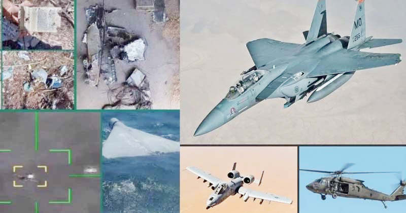 শুরুতে মার্কিন সেন্ট্রাল কমান্ড (সেন্টকম) ক্ষয়ক্ষতি অস্বীকার করলেও পরে ইরান ঘটনার ভিডিও ফুটেজ প্রকাশ করেছে। দক্ষিণ-পশ্চিম ইরানে যুক্তরাষ্ট্রের একটি ‘এফ-১৫ই’ (F-15E) যুদ্ধবিমান বিধ্বস্ত হয়। বিমানের দুজন ক্রুর মধ্যে পাইলটকে উদ্ধার করা গেলেও কো-পাইলট নিখোঁজ রয়েছেন। একই দিনে পারস্য উপসাগরের হরমুজ প্রণালীতে একটি ‘এ-১০ ওয়ার্টহগ’ (A-10 Warthog) বিধ্বস্ত হয়; এক ক্রু উদ্ধার হলেও অপরজন নিখোঁজ।